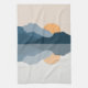 Abstraktens färgstarka illustration av soluppgången med blå berg i sjö