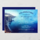Life firande inbjuds i blå nyanser med vattenfärg tvättar att man träffar ett foto av en kragisk strand. Ocean Temed begravningsinbjudan personlig med din kära namn och år levande. Blått vattenfärgsmeddelande med blå och vit text och utan foto.