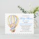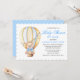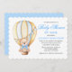 Nalle av blått Luftballong med blått blå babyskor efter postinbjudan. Blå text.