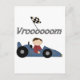 Blåa T-tröjor, mugg, hoar, knappar, magneter, kort, klistermärken och annat med en blå tävling-bil, avsluta flagga och text som lyder "Vrooom"!