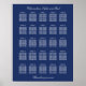 Tunga Blue 25-Bröllop-sätesschemat Poster, anpassa namnen på paret och gästernas namn tillsammans med någon annan text som du kanske vill anpassa. Ett sittande diagram med snyggt vit elegant på marint blått.