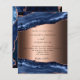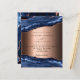 En modern och trendig bröllopsinbjudan till kvällen. Blått och ro guld agat, marmor stenbakgrund. Anpassa och lägg till namn och detaljer. 1 lakan = 1 inbjudan tryckt kant till kant.