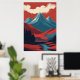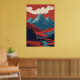Blåblå återfyllnadsmurskonst för bergslandskap Poster för utskrift.
