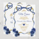 Blåblå Blommigt Bow Ram Guld Krona Mis Quince Inbjudningar