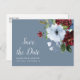 Blåblå blommigt i burguddig damm spara datumet vykort