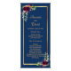 En elegant och bohemer, Bho stil bröllopsprogram. Vattenfärgade fjädrar, ro, blommor i burgundi. Mallar för namn, data, detaljer om ceremonin och party. En faux guld ram och en chic marin blå bakgrund, guldfärgad brev.