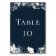 Detta eleganterna och roliga minigarkort för marinblått bordsnummer i bröllop har blått, grönt, vitt och silver vattenfärgat botaniska ämnen ovanpå en djup blå bakgrund. Anpassadet är lätt att skriva och typografi. Kontakta designern om du har några frågor om den här designen eller någon av de andra produkterna i samlingen.