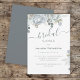 En enkel inbjudan till eleganten i möhippa med grönt blommigt lätt bläckblad, botaniskt enkelt modernt, dammigt blått trädgård bukett med rosor, elegant vattenfärgsblå silver-löv, grönt för löv i stil, modern kalligrafi, typsnittstext, möhippa typografisk vår, sommarhändelse i höst trendig snyggt stil grått, blåaktisk silver utformning. Artwork ritas för hand av Laura Lacina.