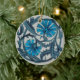 Blåblå blomsterkonst av vintage, rustik julgransprydnad keramik