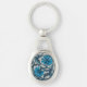 Blåblå blomsterkonst av vintage, rustik ovalt silverfärgad nyckelring