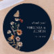 Blåblå Boho-Blommigt Classic Round-fästare. Den här snyggten och elegant bröllop tackar dig för att du har en klassisk, rund dekal med vackra, handmålade, vildblommor som arrangeras som en underbar bouquet-perfekt för vår, sommar eller fallbröllop. Sök efter matchande objekt i samlingen Navy Blue Boho Wildblomma Bröllop.