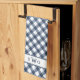 Chicen med monogrammerade kökshanddukar har en handmålad buffel i marint blått och vitt mönster, med ett vitt band som bär ditt tre första monogram.