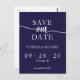 Blått Chic-calligrafi Bröllop spara datum-vykort