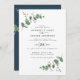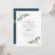 Eucalyptus Greenery gör moderna, minimala trädgårdsbröllopsinbjudningar i party. En enkel botanisk elegant finns i contemporaryns blå, vita, sage grönt och svarta färgbana