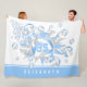 Den här roligt flickans volleyball-filt har en "explosion" av varierad storlek ljusblå, grått och vita volleybollar och blå, grått och vita stjärnformer på anpassadets svarta bakgrund - anpassa med idrottsman namn och jersey nummer - så blandas de blå och grått volleyball-panelerna med en giftig blommigt kaleidoskopisk mönster för ett texturerat utseende - av katjon z_d_zynes