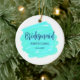 Blåblå grönt, lägg till namn-datum och stam julgransprydnad keramik