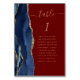Det moderna kortet för bordsnummer i bröllop, som är lämnat kant i eleganten, har en marin blåfärgad agate i gräns som trimmas med faux guld glitter. Ord "bord" visas i handskriftsskriptet guld-färgad på en burgundröd bakgrund. Lägg till namnen för de gäster som tilldelats varje bord.