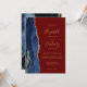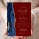Den moderna bröllopsinbjudan från elegantens lämnat kant har en marin blå vattenfärgsagat gräns som trimmas med faux guld glitter. Anpassadet kombinerar handskrift, rityta och kursivt typsnitt med guld-färgad på en burgundröd bakgrund. Den omvända sidan har en matchande marin blå och guld-agate-design.