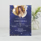 Blåblå guld-foto-glitter-ballonger inbjudningar