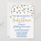 Anpassningsbar-babyduschinbjudan till festliga och moderna mörk blått effekter och guld-glitter-effekter ger upphov till konliki mönster (observera att glitter endast är tryckt i stället för glitter).