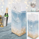En födelsedagspressning för en elegant och glamorös 30-årsdag (eller någon ålder). En faux guld glitter som skakar på ljusblå bakgrund. Ljuset guld färg ge är en champagne bubblande stil. Namn är skrivet i elegant brun med ett modernt handskript i stil. Mall för ett datum och en födelsedag som firas. Den viktigaste delen är texten - Plocka champagnen. På baksidan står Grattis på födelsedagen i samma elegant som framsidan.