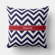 Blåblå lg Chevron Cranberry Namn Monogram Kudde