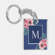Fint marinblå monogramnyckelring med rosa och grönt vattenfärgsblommor. Söt, elegant och söt. Anpassa med start och bild. Underbar för Mors dag-gåva, födelsedagspresent eller gåva till lärare och kolleger.