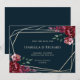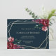 Anpassadet sparar datumkortet i mörkens marinblått. Med söt burguny blommigt-buketter med guld geometriskt ram.
