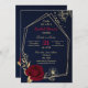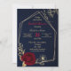 elegant romantiska burgundblommor och guld löv på guld-geometriska ram lyxmarinkblått inbjudningskort för möhippan. glitter-detaljerna simuleras