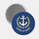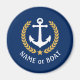 En Personlig runt magnet med din båt namn, namn eller annan önskad text efter behov. Med ett designat sjöbåtsankare i anpassningsbar, löv i guld stil och stjärnemblem på marinblått eller justera enkelt det primära färg för att matcha det aktuella temat.