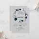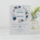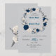 Brantblått och vita blommor och grått löv blommigt bröllopsinbjudan