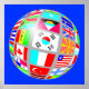 Världens globala lobe av flaggor på blå bakgrund. Fullt anpassade poster - inklusive färg och gräns. Tillgänglig i flera storlekar.