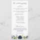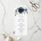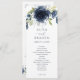 Blommigten Navy Blue och Silver med Ceremony-programmen Greenery Watercolor Bröllop: Det här bröllopsprogrammet har en vacker vattenfärgbukett med marin blå blommigt överst. Baksidan har plats för din bröllopsfest tillsammans med ett tack eller ett minnesmeddelande i grund.