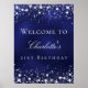 En välkommen poster för en glamorös 21:a (eller vilken ålder som helst) födelsedagsfest. En marin blå bakgrund med elegant faux silver-stjärnor. Den blå färg är ojämn. Anpassa och lägg till namn och ålder 21 år. Vit brev.