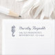 Deep Navy Blue eller Nght Blue Return address label template with small vintage Seahorse and elegant script font - Nuptial -. Det typsnitt som har utvecklats för särskilt fjällande tillfälle som bröllop. Här i kombination med det moderna sofistikerade serifteckensnittet - Cormorant -. Returetiketter som tillför lite lyx till dina utskick. Mycket av det med © y.BEE SEA