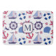 En roligt nautiska mönster är ett kännetecken på detta färgstarka badmatt. Bilder i mönster omfattar svält, sjöslingor, fraktens hjul, ett ankare, en banderoll och en segelbåt. Den marinblå, medelblå och röda mönster placeras på en vit bakgrund. Monogrammet finns på en vit banderoll som är inklädd i matchande rött och blått och placerad i mitten. Ett vackert tillägg till vilket badrum som helst, och personlig bara för dig. Se till att se motsvarande handduksset och duschgardiner i vår butik.