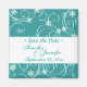 Spara datum magneter är en grönt blå färg med vita snurrar och snöflingor i bakgrunden. Det här är en perfekt för ett vinterbröllop! Anpassadet, kom in i namn och datum och allt du har gjort! Lycka till och grattisar!