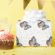 Vattenfärgsgrafik av blå fjäril på vit bakgrund.