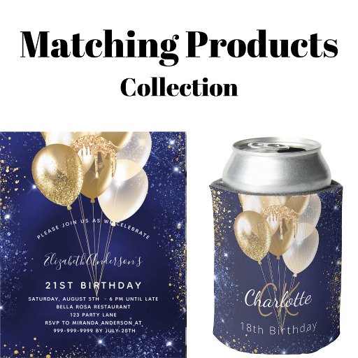 En presentväska för en gigantisk och glamorös 21:a (eller någon ålder) födelsedag. En marin blå bakgrund som dekoreras med glitter och guldballonger. Den blå färg är ojämn. Anpassa och lägg till ett datum, namn och 21 år. Texten: namn är skriven i vitt med ett modernt handskript i stil