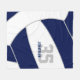 Den här volleybollfilten för en pojke eller flicka har en enkel, abstrakt överdimensionerad marin blå och vit volleyball som täcker hela filten - idrottsmannens namn och jersey-nummer placeras utanför mitten, anpassade i koordinering av blått och grått - av katz_d_zynes