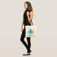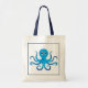 Tote-väskan som visas i naturen med marinblå band med en söt blå bläckbild. Anpassa den här väskan eller köp som den är.