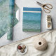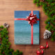 Backa dina gåvor i tropiska blå hav. Krystal klar bild av oceanfotograferingen vatten på en papper kvalitetsförpackning.