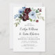En elegant med vattenfärgsburgundi och dammig blåa blommor. Du kan anpassa formuleringen, texten storlek, färg och typsnittet på den här bröllopsinbjudan.