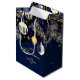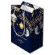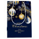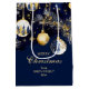 God jul hälsning julklapp klassisk guld och marinblåvita bubblor och snöflingor snögrädda träd vattenfärg, julklapp marblått och guld
