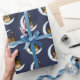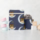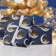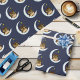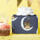 Det lilla knubbig baby bruna uggla sitta på måne med stjärnor runt i en blå bakgrund