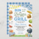 Fira mamma med en babydusch med fullt av smak och roligt! "Bun i Oven och Burgers på Grill"-babyduschinbjudan är perfekten till gästerna i inbjudan till en cookout-stil firande till heder för er lilla på vägen. Med vattenfärgbilder av saftighetbrännare, grillande verktyg, vattenmelonskivor, maj på kolven och ett klassiskt blått gingham picnic bord - denna inbjudan ger hela charmen av en sommar-BBQ med en pojke-tvist. Den leksliga designen och den redigerbara texten gör det enkelt att anpassa för alla avslappnader, roliga eller utomhusbabyduschar. 💙 PERFEKT FÖR ・ Barnbabyduschar ・ Bakgård BBQ firande ・ Sommarduschteman