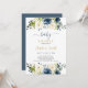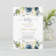 Inbjudan till babyduschpojke i blommigten med blå vattenfärg