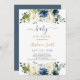 Blåblått blommigt, babykläder, pojkinbjudan inbjudningar
