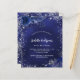 En marin blå bakgrund, dekorerad med faux silver glitter, gnistor och blå blommigtar. Den blå färg är ojämn. Anpassa och lägg till information om namn och party. 1 lakan = 1 inbjudan tryckt kant till kant