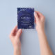 Observera att inbjudan är papper och mycket tunn. Kuvert ingår inte. Om du vill ha mer omfattande inbjudningar (samma design) kan du besöka vår butik. En marin blå bakgrund, dekorerad med faux silver glitter, gnistor och blå blommigtar. Den blå färg är ojämn. Anpassa och lägg till information om namn och party.